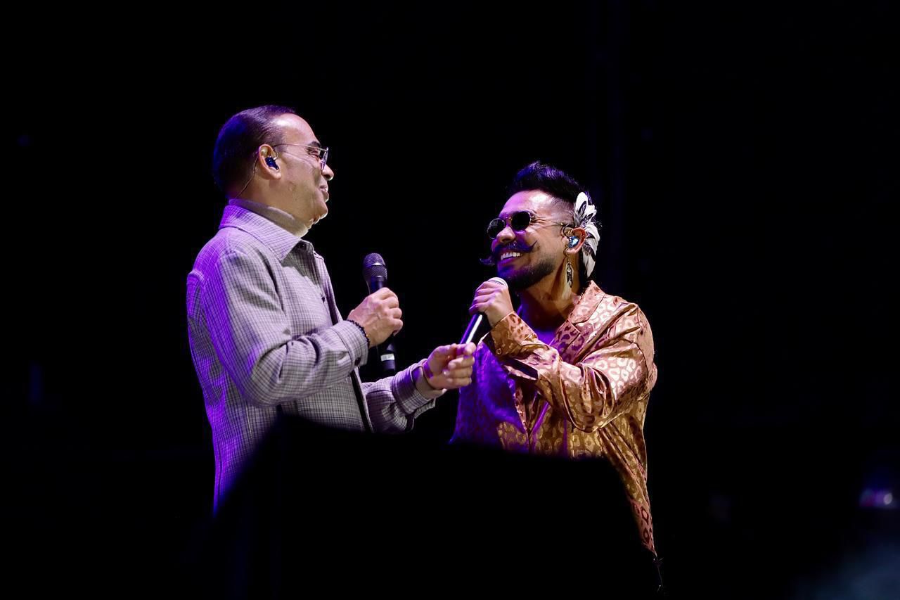 Durante el concierto, el salsero puertorriqueño invitó al escenario al cantante potosino Jimmy Rodríguez, quien abrió el concierto de este lunes y compartió con el público un momento especial al interpretar juntos parte del repertorio, lo que fue recibido con entusiasmo por los asistentes.