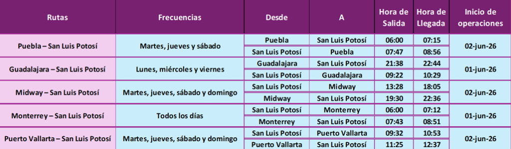 La apertura de estas cinco nuevas rutas en San Luis Potosí atiende a las necesidades de